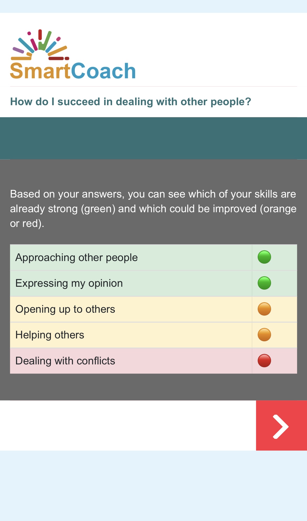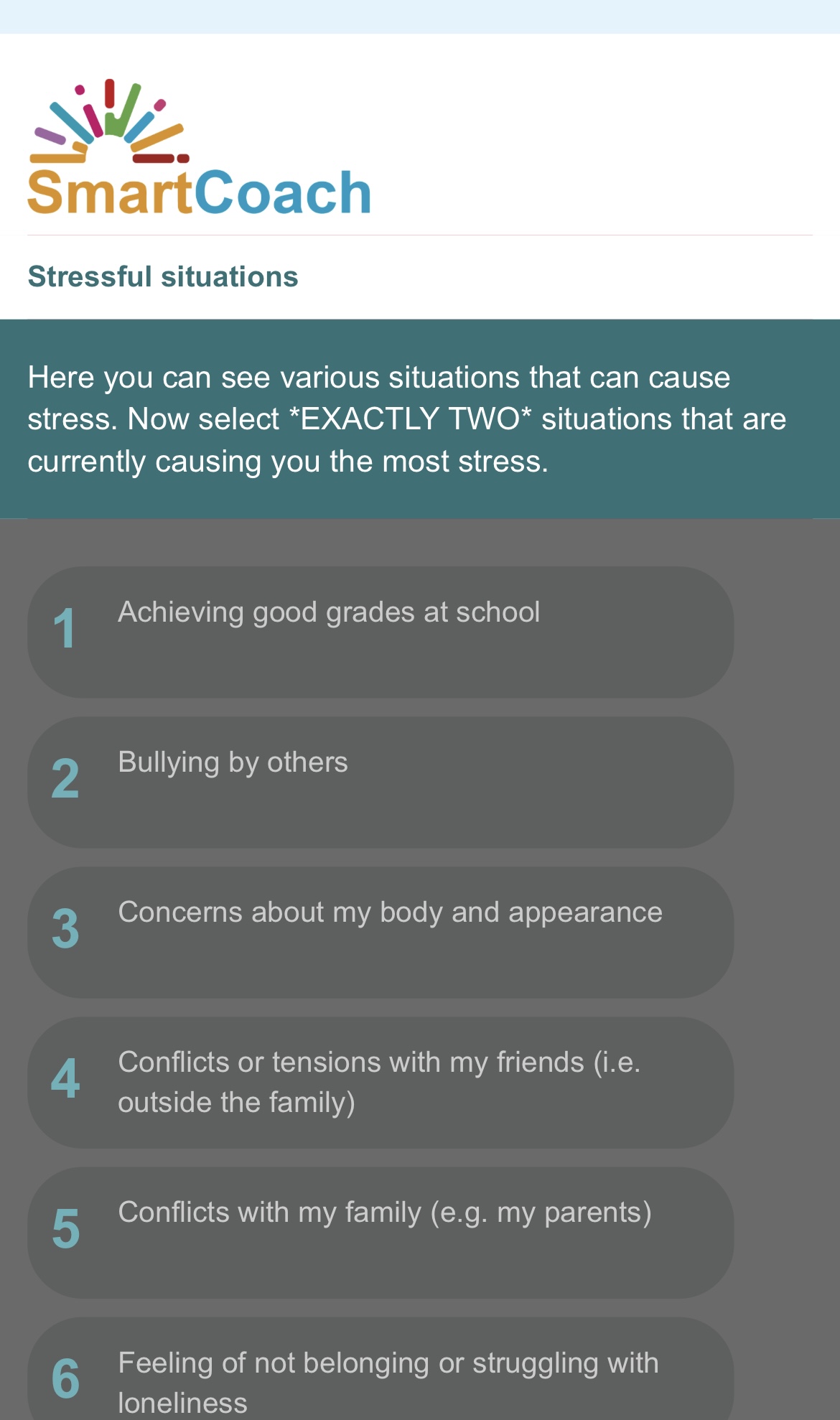 The SmartCoach is based on the individual answers given in a baseline questionnaire. This enables the SmartCoach to address topics that are important to young people.